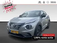 Nissan Juke 1.6 Hybrid N-Design | €2.000,- inruilkorting Automaat Algemene informatie Carrosserievorm: SUV Bouwjaar: 2025 Modelreeks: jul. 2024 - 2025 Tellerstand: 5 km Kleur: Magnetic blue met zwart dak (blauw metallic) Technische informatie Vermogen brandstofmotor: 69 kW (94 PK) Koppel: 148 Nm Aantal cilinders: 4 Motorinhoud: 1.598 cc Brandstofsoort: Hybride (elektrisch en benzine) Tankinhoud: 46 liter Transmissie: 6 versnellingen, Automaat Aandrijving: Voorwielaandrijving Acceleratie (0-100): ...