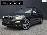 BMW X3 M40i xDrive High Executive 360pk Panodak Leder Trekhaak Memory H&K Carbon Hud Blindspot Elektr kofferbak Sfeerverlichting Algemene informatie Carrosserievorm: SUV Bouwjaar: nov. 2018 Tellerstand: 149.325 km Kleur: Zwart metallic Technische informatie Vermogen: 260 kW (354 PK) Aantal cilinders: 6 Motorinhoud: 2.998 cc Brandstofsoort: Benzine Transmissie: 8 versnellingen, Automaat Aandrijving: Vierwielaandrijving Acceleratie (0-100): 4,8 s Topsnelheid: 250 km/u Maten Wielbasis: 286 cm Gewic ...