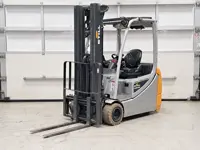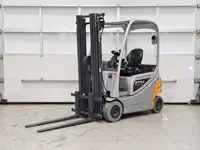 type STILL model EXV 14 C serienr F20321J00673 bouwjaar 2018 uren 3891 capaciteit 1.4T hefhoogte 5.40m (T) hoogte 2.23m brandstof E banden Cushion extra's 560 mm x 1150 mm