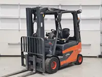 type LINDE model E25-01 serienr H2X387G01934 bouwjaar 2016 uren 8376 capaciteit 2.5T hefhoogte 3.20m (D) hoogte 2.17m brandstof E banden CSE extra's FF. 3e + 4e valve