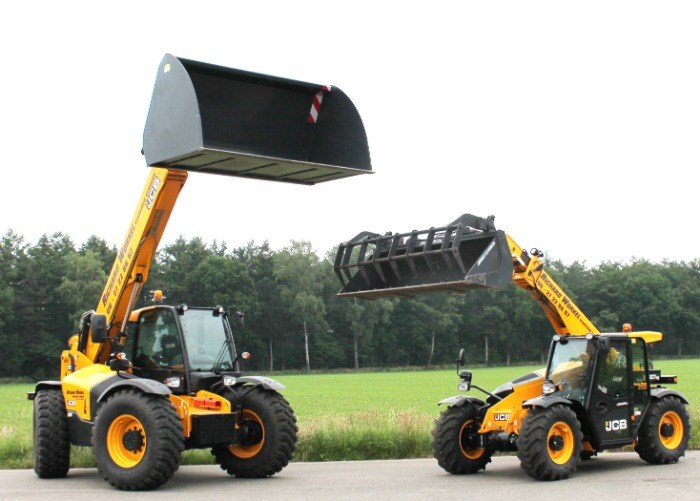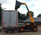 De JCB 527-58 met een hef vermogen van 2,7 ton en een cabine hoogte van 2 meter.