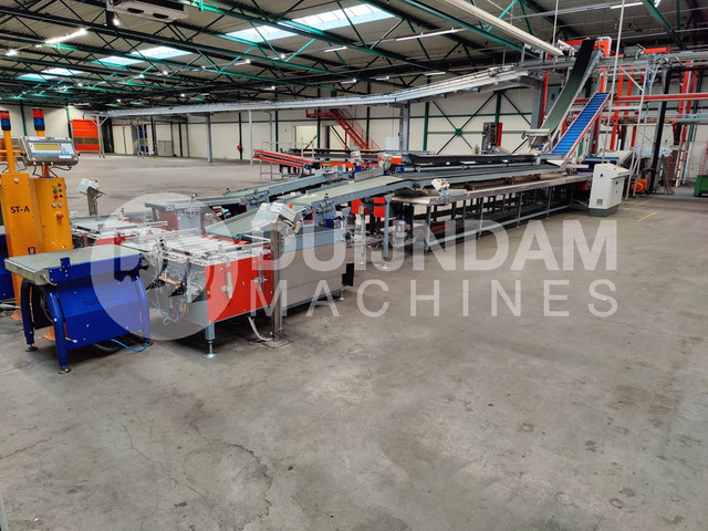 - 2x Gijgloten voor aanvoer lege dozen 580 x 42 cm, enkel met ophanging aan de pakband, exclusief boven ophanging