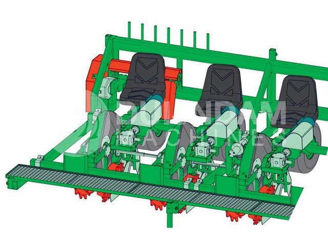 De preiplantmachine wordt geleverd met plantvoet met een vorentrekker, zodat de plant in een geul geplant wordt die nadien aangeaard wordt. Verder heeft de machine een verstelbaar plantbord met kistenrek en eventueel loopplateau.