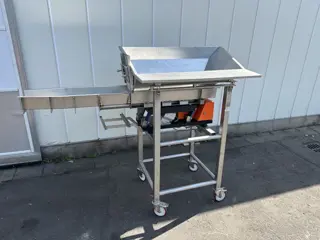 Schudder / trildoseerbak voor om groente in een waslijn of verwerkingslijn te doseren.