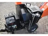 - De houtversnipperaar is voorzien van een Hydraulische invoerrol, een draaibare uitwerpkoker en een stalenvliegwiel met 2 messen.