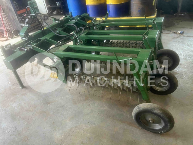 - Een aangedreven as met vibrerende/verende pennen (tanden) loopt door de bodem om onkruid te verwijderen voordat het gewas sluit.