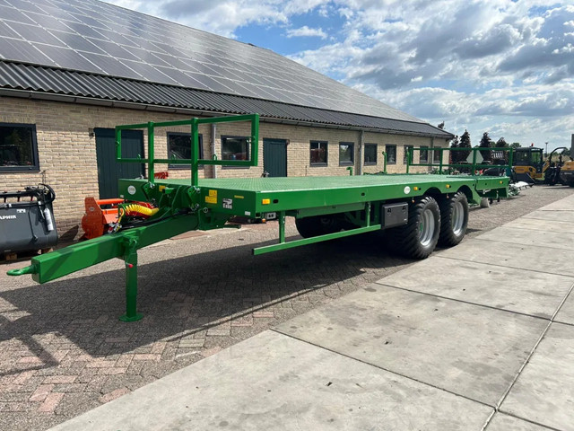 Nieuw uit voorraad leverbaarBalenwagen8m laadlengte Achterkant hydraulisch zakbaar voor machine transportLuchtremmen DisselveringVerlichting