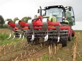 de cultivator is voorzien van kongskilde vibro flex triltanden, welke zich hebben bewezen in de praktijk. De tandbalk kan door middel van een topstang en een pen-gat verbinding eenvouding versteld worden ten opzcihte van de kooirol, welk standaard geleverd wordt met een diameter van 42cm. de grote vrije doorlaat van 60 cm voorkomt verstoppingen. met behulp van verschillende beitels is de machine af te stemmen op het type bodum en bewerking. Verlichting, zwemkwielen en zeiplaten behoren tot enkele van de opties op deze machine,