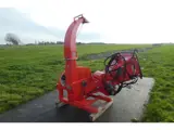 De houtversnipperaar is voorzien van een grote invoerkoker, een draaibare uitwerpkoker en een stalenvliegwiel met 4 messen.