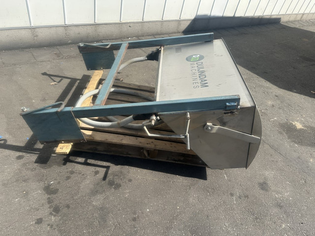Eenvoudige RVS kunstmestdoseerbak met twee uitgangen, bedoeld om kunstmest toe te dienen bij bijvoorbeeld: