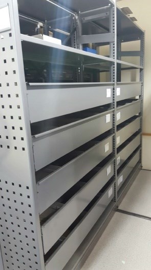 150 lades te koop voor opslag onderdelen.Staanders, legborden en lades voor slimme en nette onderdelenopslag en voorraadbeheer. Naleverbaar en zeer degelijk.