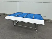Het Packhuys S-vormig 2 x 90° breedte 20 cm Meer informatie Merk: Het-Packhuys Type: Transportband Algemene staat: goed Referentienummer: 279832 Modular belt Vaste snelheid 380 Volt A modular belt is a type of conveyor belt made from interlocking plastic modules, offering flexibility, durability, and easy maintenance. It is ideal for transporting various products in industries like food processing, packaging, and logistics. Thanks to its modular design, damaged sections can be replaced individua ...
