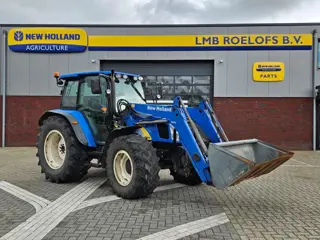 New Holland T5050 met voorlader, Bouwjaar 2010, Uren 11770, Fronthef en PTO, omkeershuttle, Hi-Lo, 3 dw ventielen achter 1 voor, hydraulische aanhangwagenrem, Gereedschapskist, Radio, Airco, 600/65R34 en 480/65R24 banden. incl dichte bak