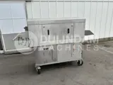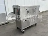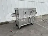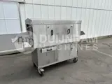 Doorvoertype. Ontworpen voor het grondig wassen van kunststof kratten. Kratten worden handmatig door de machine geduwd. De machine heeft twee secties: één voor basisreiniging en één voor naspoelen. In de reinigingssectie worden de kratten besproeid met een circulerende reinigingsoplossing die wordt verwarmd tot 50–55°C. De temperatuur wordt geregeld door een thermoregulator. De oplossing wordt in het reservoir van de machine bewaard. De reinigingsoplossing wordt gelijkmatig over de kratten verdeeld via een systeem van sproeiers met instelbare richting. Na het basiswassen gaan de kratten door een naspoelsectie. Daar worden ze gespoeld met schoon heet water /80–85°C/ via een collector met sproeiers. Dit water wordt geleverd via de waterleiding van de klant. Het spoelwater stroomt in het reservoir voor de hoofdreiniging en ververst de reinigingsoplossing, terwijl het vuil wordt afgevoerd via de overloopafvoer van het reservoir.