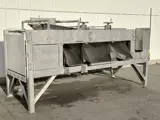 - Er is een sproeileiding aanwezig om bijvoorbeeld het product uit de uitloopbakken te sproeien. Bovenin de bak zitten gaatjes, zie foto's.