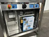 Machine geschikt voor het verwerken van kartonnen trays, ontworpen voor dubbel gebruik. Voorzien van een pneumatisch systeem en vacuümpomp.