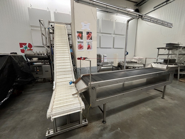 - Totale afmetingen: 725 x 470 cm (de lengte kan met een andere transportband ingekort worden tot +/- 525 x 470 cm)