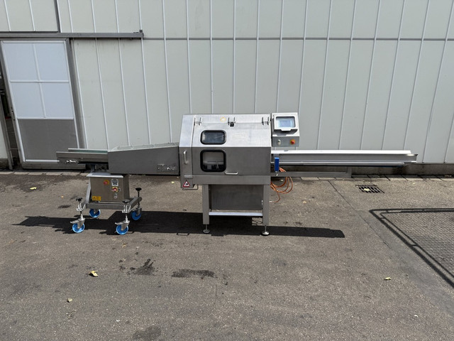 Automatische productherkenning: Dankzij sensoren en een PLC-besturing detecteert de machine automatisch het begin en einde van elk product. Hierdoor kan de machine exact berekenen hoeveel sneden nodig zijn om het product in de gewenste dikte te snijden, wat resulteert in minimale verspilling en maximale opbrengst.