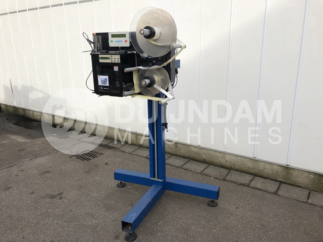 Deze stickermachine brengt zelfklevende labels aan op uw produkt als deze wordt geïntegreerd in uw lijn