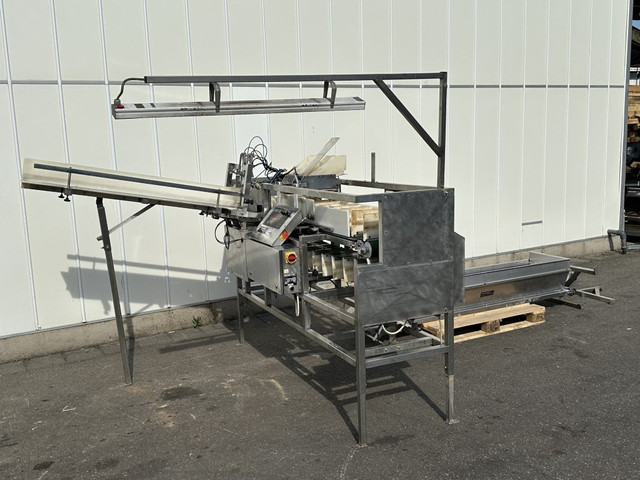 De NBM 50 is een automatische ontnester (tray denester), ontworpen om gestapelde kunststof of kartonnen trays automatisch één voor één te ontkoppelen en aan te voeren naar een verpakkingslijn. Specifieke modelconfiguratie voor een 1 kg wortelschaal