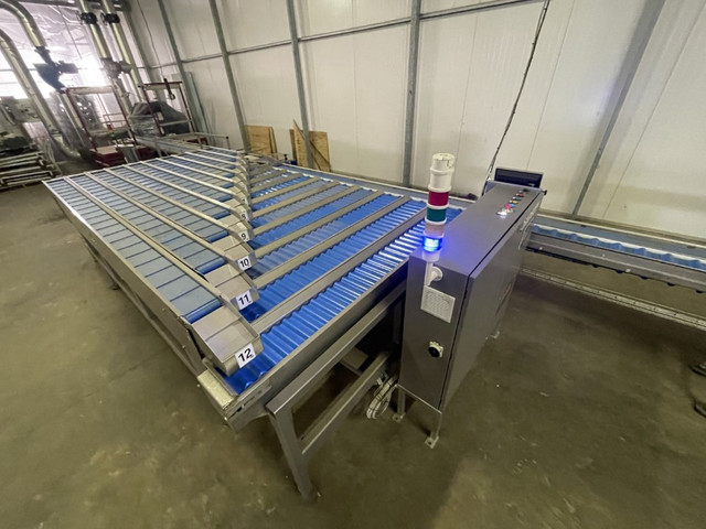 Roterende invoerband met 10-kops weger en speciale weegbakken