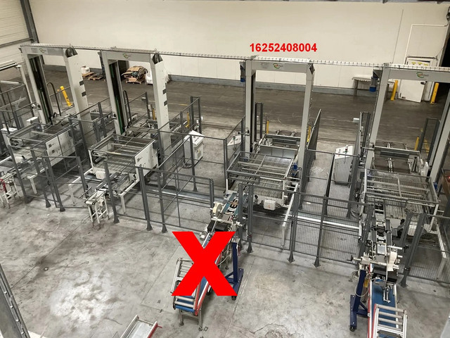 De machines hebben met 4 machines in één lijn gestaan, waarbij de pallets met behulp van een verrijdbare shuttle automatisch werden aangevoerd en omsnoerd met hoeklatten. Deze palletiseerders met ketting uitvoerbaan worden ook los verkocht.