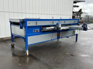 Wanneer de afstand tussen de rollen over de sorteersecties verandert, verlaagt elke tweede rol zijn positie. Dit zorgt voor een correcte positionering van het product tussen de rollen. De snelheid is regelbaar door middel van frequentieregeling.