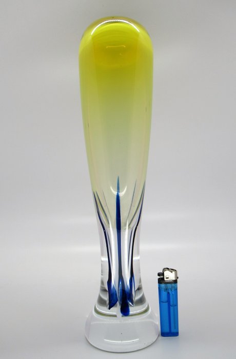 Mooie grote torpedovormige vaas van Adam Jablonski. De vaas bevindt zich in meer dan goede staat. geen chip of breuk, zoals gebruikelijk schuifsporen aan de onderzijde van de vaas. De vaas heeft netjes een met de hand gegraveerde handtekening. Een mooi stuk kristal glazen item wat het zeer goed doet in een modern maar ook vintage interieur. Graag verwijs ik u naar de foto's, welke mede onderdeel van de beschrijving zijn.