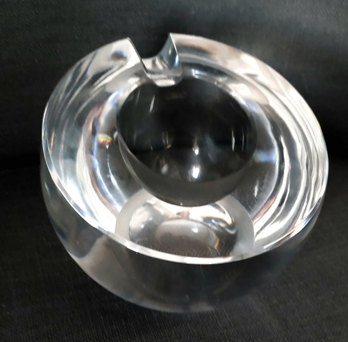 Schitterende en zware asbak/lege zak die ook in een kandelaar kan worden afgenomen, met oogverblindend en transparant kristal gesigneerd door het beroemde wereldberoemde Baccarat-huis. Door dit zowel decoratief als nuttig object duik je in luxe en tijdloosheid.