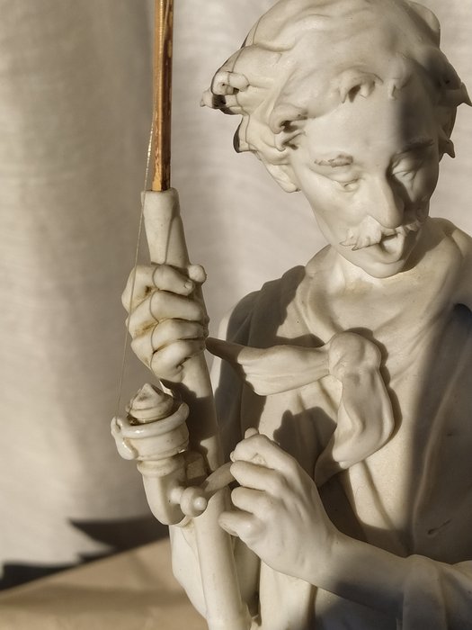 Een visser verrast door zijn eigen vangst opent op natuurlijke wijze zijn bek en toont al zijn verbazing. Het naturalisme van de schets is perfect, compleet met een getekende lijn.