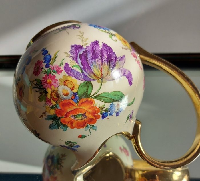 Mooie kleurrijke bloemendecoratie, versierd met een mooie spiraalvormige handgreep die het geheel zijn charme geeft.