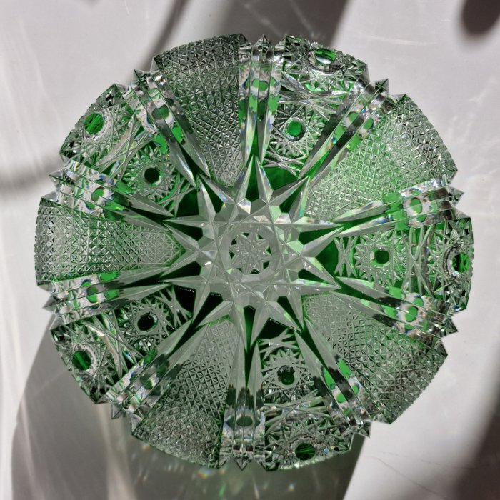 Kom/slakom/middenstuk van smaragdkleurig Boheems dubbel kristal.