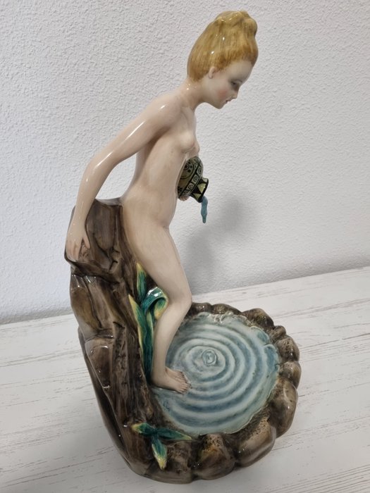 Schitterend stukje Italiaans keramiek. Gesigneerd C.I.A Torino en getiteld "La Sorgente" (De bron). Periode: 1940.