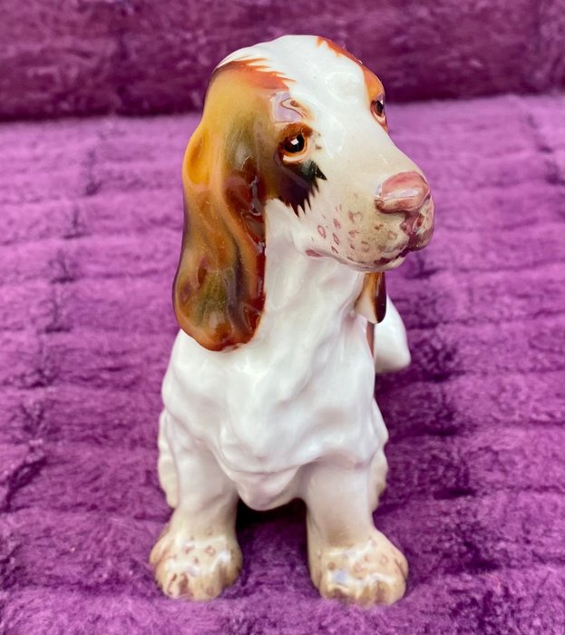 Antiek C. Martinu porseleinen Cocker Spaniel Dog-beeldje, jaren 60, verzegeld aan de basis, 12 cm hoog en 12 cm lang, in zeer goede staat, zeer moeilijk te vinden, geleverd zoals op de foto's.