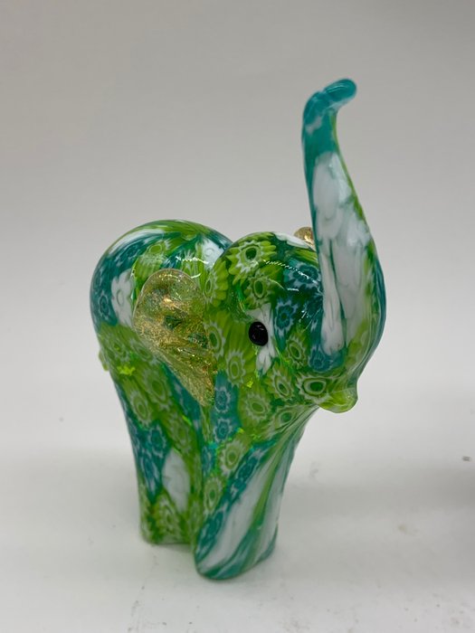 2 Olifanten in gemêleerde murrine, 24 kt bladgoud, handgemaakt door meester Campanella, een van de meest bekende in Murano sinds 1975 voor zijn producten in bewerkte murrina, snelle verzending en veilige verpakking, met Made Murano label.