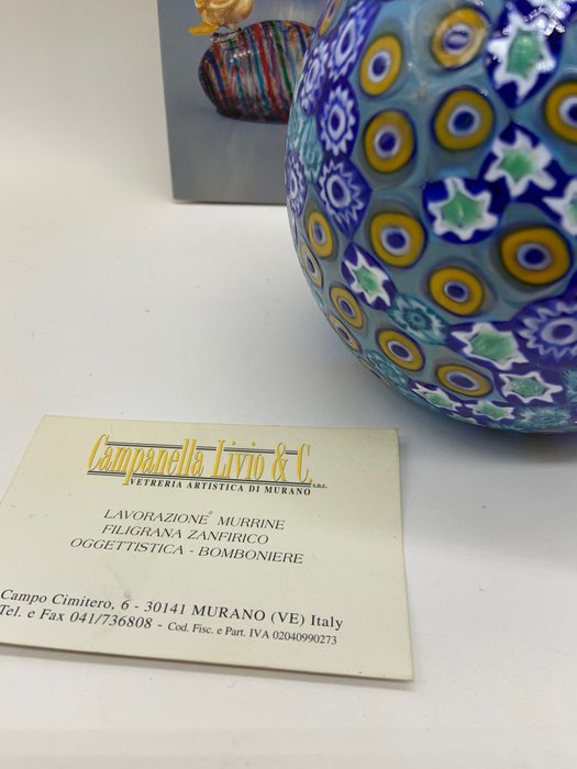 1 bolvaas met sterblauw gekleurde murrine, hoogte 10, omtrek 38, handgemaakt door meester Campanella, een van de beste meesters in Murano in de productie van geblazen murrina sinds 1975, snelle verzending, veilige verpakking en MADE IN MURANO garantiecertificaat. echt en eigen meesterwerk. FANTASTISCH