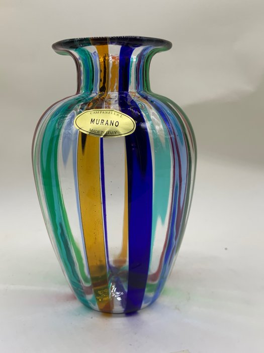 1 moderne vaas met harlekijn filigraan vat, hoogte 18, omtrek 23, handgemaakt door meester Campanella, een van de beste meesters in Murano in de productie van geblazen murrina sinds 1975, snelle verzending, veilige verpakking en garantiecertificaat MADE IN MURANO.