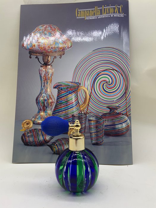 1 parfumhouder met blauwgroen filigraan vat, handgemaakt door meester Campanella, een van de beste meesters in Murano in de productie van geblazen murrina sinds 1975, snelle verzending, veilige verpakking en MADE IN MURANO garantiecertificaat.