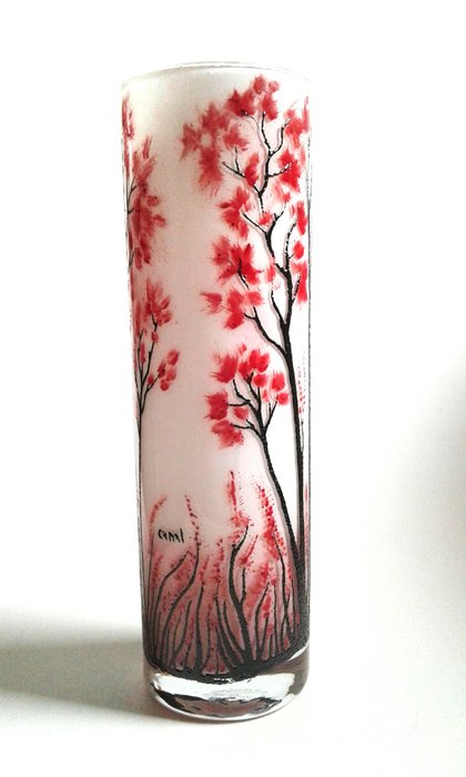 Gemaakt door Luciano Canal (signatuur), een bekende Murano glasmaker en schilder die E. Galle eer wilde bewijzen met een serie objecten zoals deze. Een stuk . In uitstekende staat zonder sporen. Garantiecertificaat Canalverremurano.