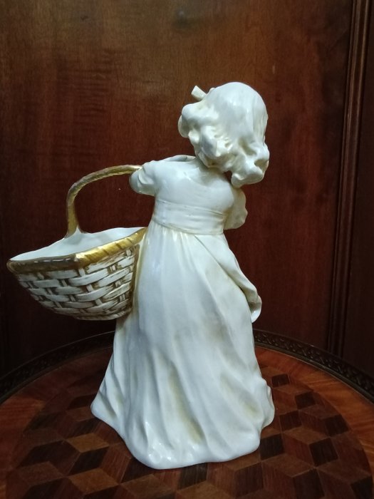 CAPODIMONTE porselein in wit glanzende bisque, ivoorkleurige tinten en gouden details, voorstellende een meisje met een mandje. Eerlijke voorwaarden.