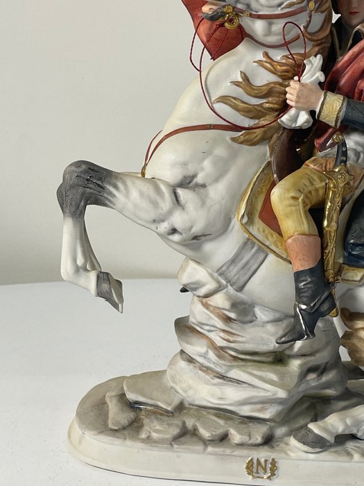 Dit beeld stelt de generaal voor vlak voor de historische veldslag bij Marengo in Noord-Italie, waar hij de Oostenrijkse troepen zou verslaan.