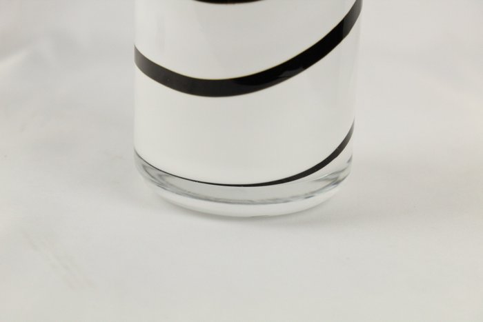 Zwart-witte, transparante, lattimo en zwarte Murano glazen vaas uit de serie 'ETNO' geproduceerd door glasfabriek Murano.com.