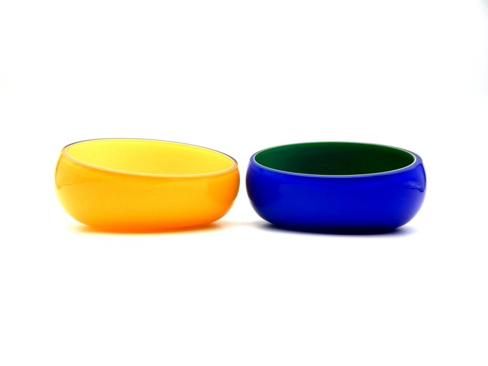 Gekleurde objecthouders, authentiek Murano glas, met de handtekening van de fabrikant op het object.