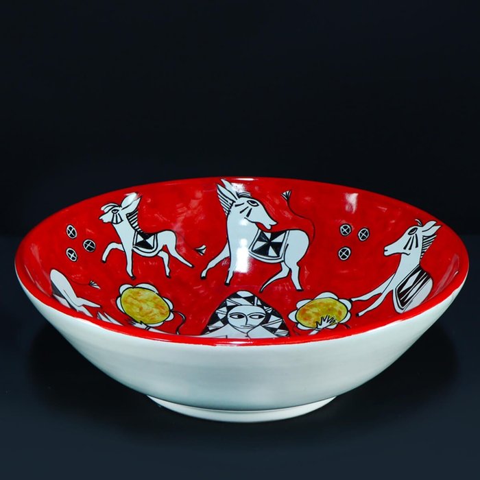 Een prachtig decoratief bord, handgemaakt door de kunstenaar D. Liguori met het bekende Vietri keramiek.