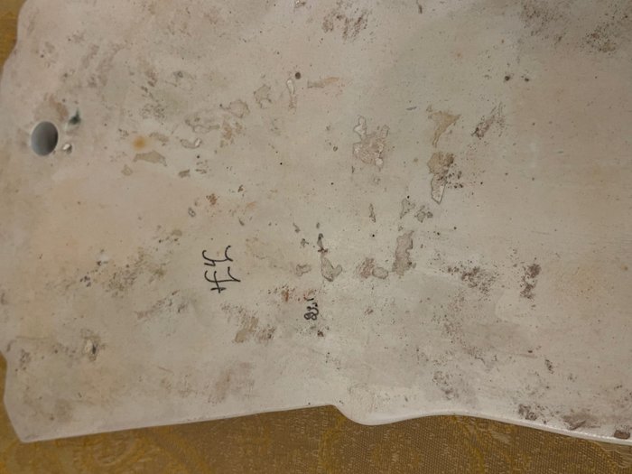 Een goede laat 19e eeuwse Franse faience muurzak van de Desvres Faiencerie, Noord-Frankrijk, gesigneerd op de achterkant