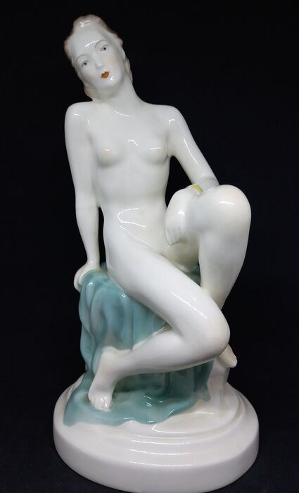 Prachtig Art Déco porseleinen beeld van Granit Porcelain Manufactory (Hongarije)