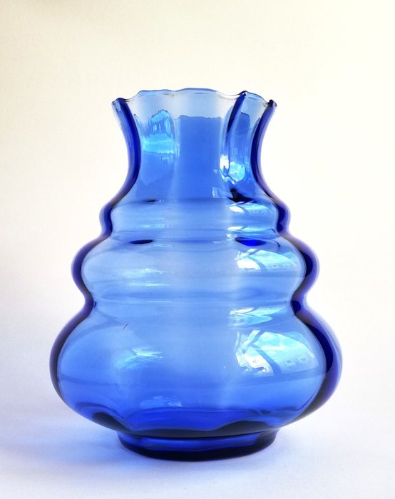 Mooie helderblauwe vaas uit de Art Deco periode van de glasfabriek Doyen in Havré-Ville (Bergen/Mons).