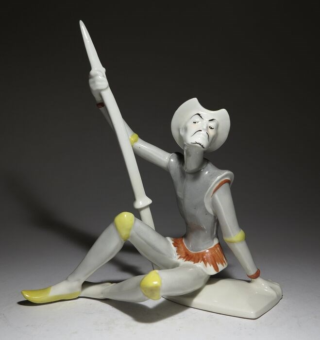 Prachtig porseleinen 'Don Quijote beeldje in art deco stijl uit de Drasche Porselein Manufactory (Budapest, Hongarije)