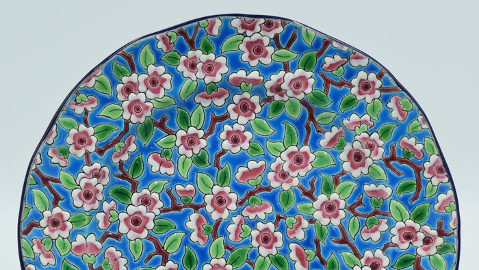 Longwy - Bord - Art Deco-stijl - Gemerkt en gemonogrammeerd - Aardewerk en cloisonné-email - Frankrijk, 1955/1985.