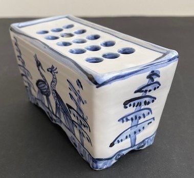 Delfts aardewerk; Blauwe handgeschilderde motieven.